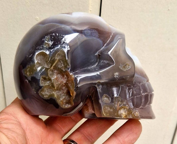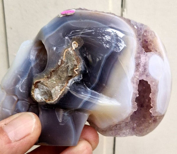 Tete de mort agate + geode Amethyste